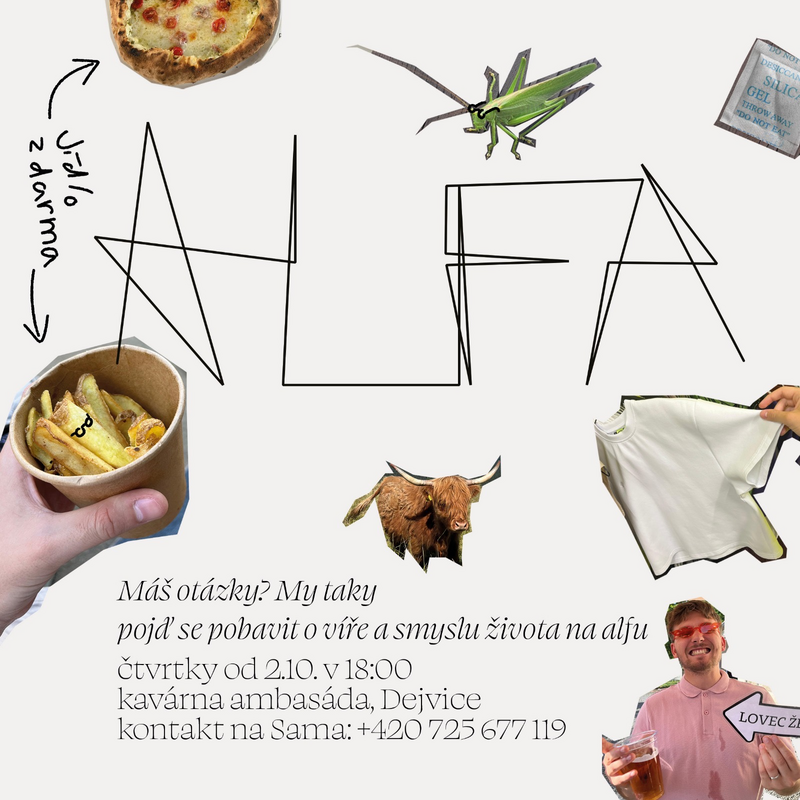 Zveme tě na Alfu na Hradčanské – místo, kde je prostor přemýšlet a mluvit o víře, smyslu života a otázkách, které se týkají nás všech. Večer začíná společným jídlem, pokračuje krátkým podnětem k zamyšlení a uzavírá se otevřenou diskuzí u stolů.