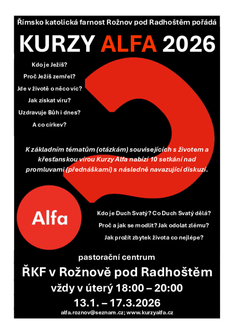 KURZY ALFA v Pastoračním centru ŘKF Rožnov pod Radhoštěm